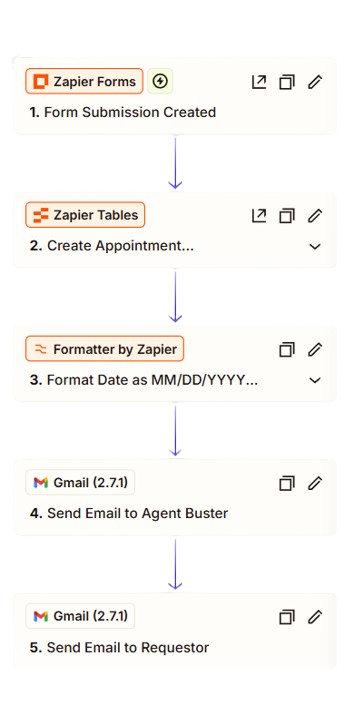 There are some great tools that can handle different pieces of this project, but one stood out above the rest. Zapier allows for the creation of an interface/form to collect interested leads. It also allows for the storing of information from those lead forms in a database table, and even further, the zaps function within Zapier allows for the automation needed for the sales lead notifications. Further, the solution from Zapier also allows for an integration with gmail to be able to automate sending emails as well. The automation flow editor within Zapier also made it a win-win to be able visualize what the automation would do and test each step from form submission to email notification. I also learned of a tool I wasn’t aware of called emailnator that allows for a temporary email address that can be used for email automation testing like this.