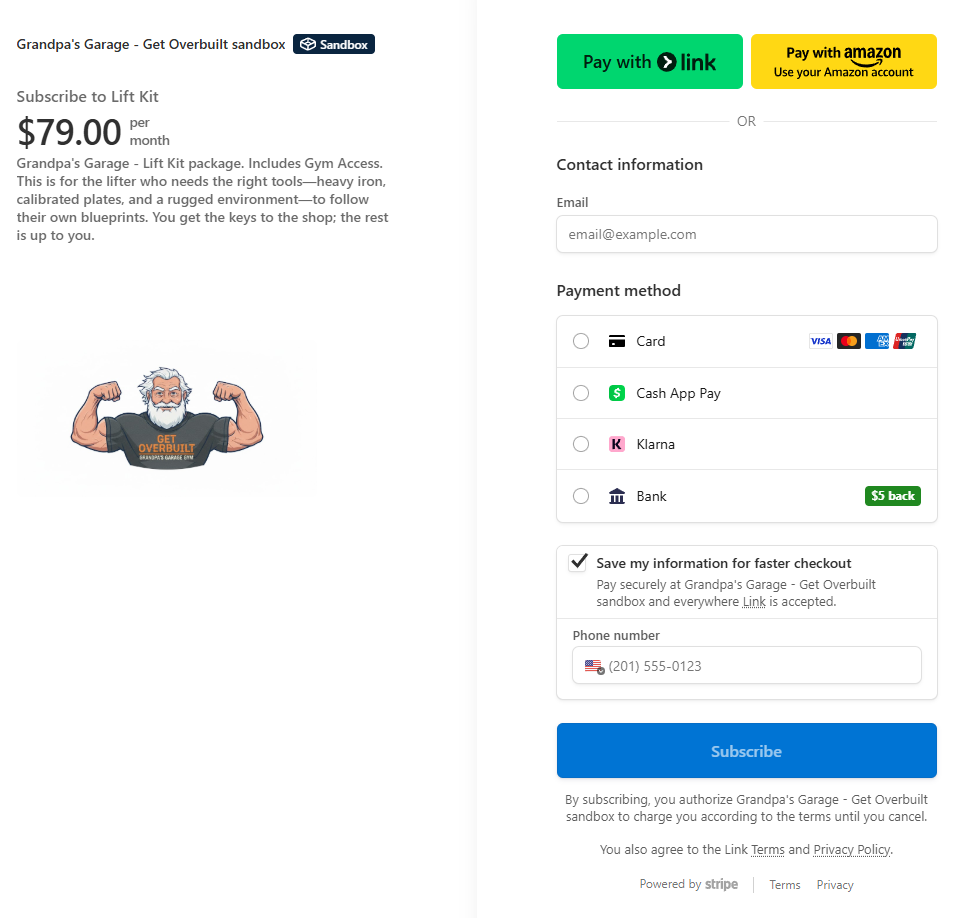 An updated landing page for the Web app to allow for information on the plans to be included and drive the purchase of the gym memberships. Through discussions we also uncovered the need to showcase multiple pricing plans, so the solution must accommodate different tiers of pricing. The identified solution was to use Carrd to take advantage of their No-Code tools for a landing page and Stripe to capitalize on the ease of implementation of the payment processing mechanism.