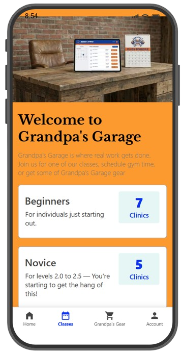 After working through a basic user experience map and wireframe, we needed to build out the flow of the site. It’s become clear that there is no perfect No-Code tool yet, but Adolo provided some great resources to make this site happen. I was able to build each of the screens needed to align with the wireframe and user experience. I was able to design the database for the user information as well as the initial class schedule for the classes at Grandpa’s Garage when they launched this initiative. I was also able to stub out the beginnings of an online store for the gear they planned to start selling.